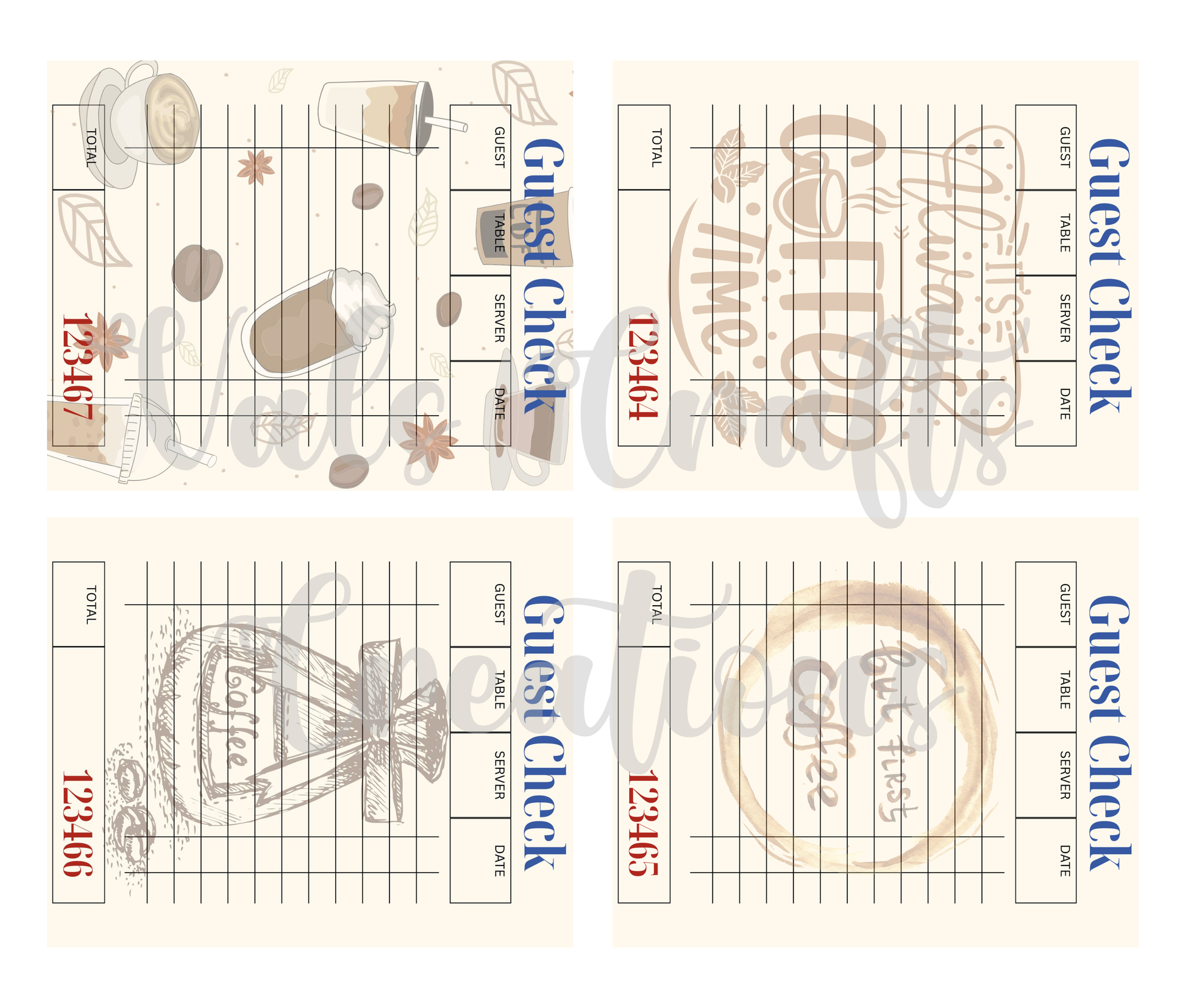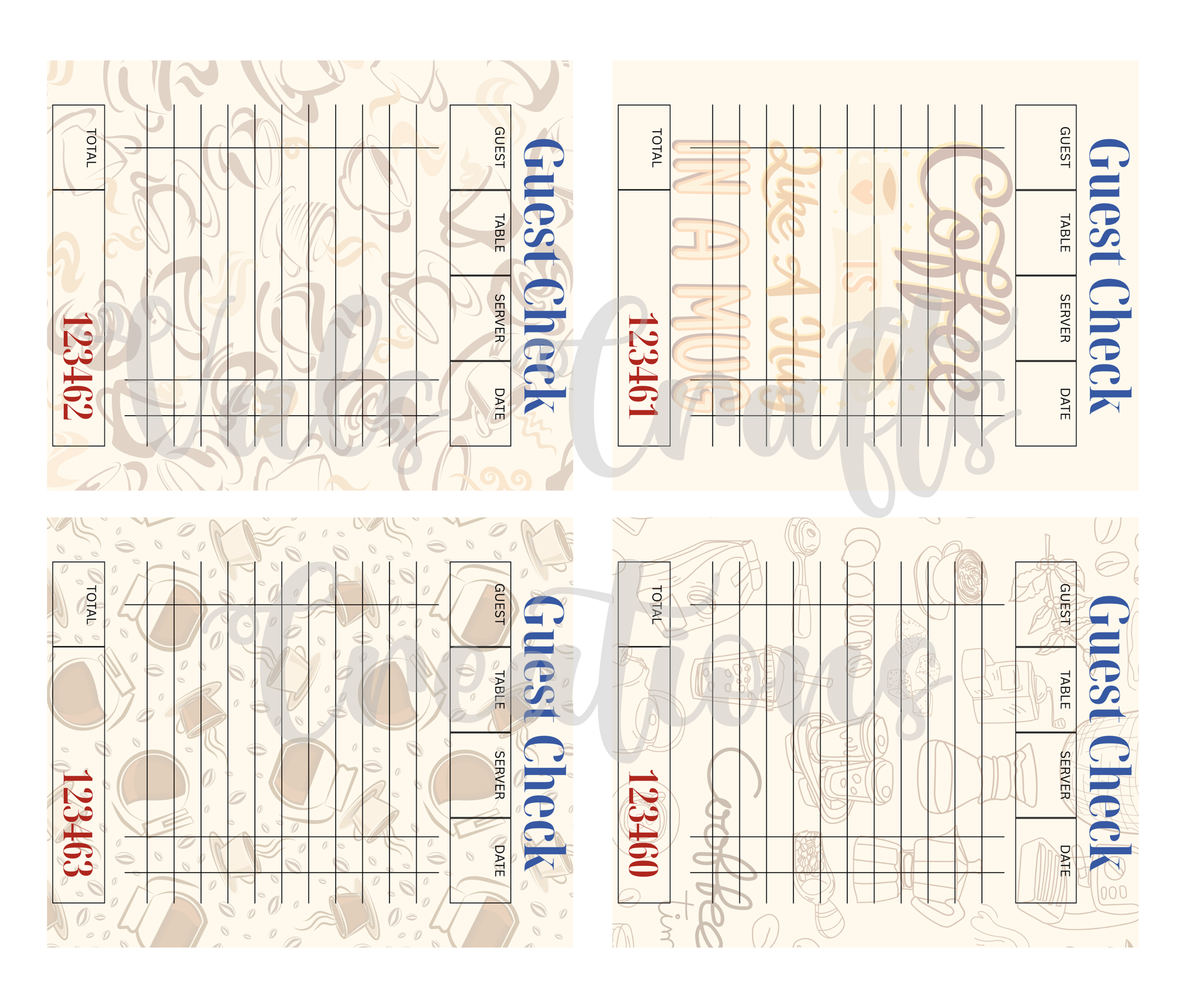 Sip and scribble with Brewed Notes—a cozy set of 12 coffee-themed guest check journaling cards. Each card features soft overlays of mugs, beans, steam curls, and handwritten textures, styled in warm browns and creamy tones.