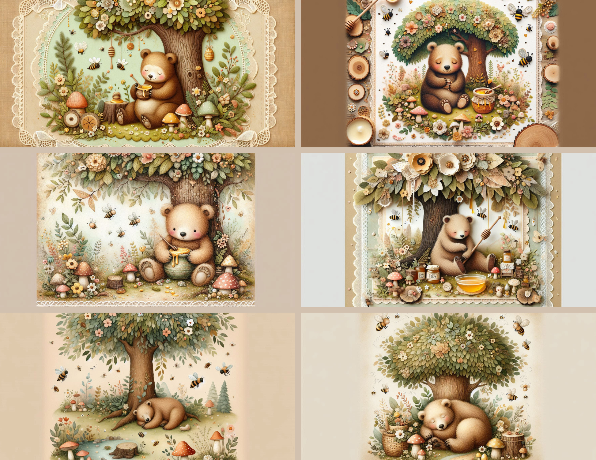 ✨ Immerse in a Storybook Forest ✨ This softly styled background paper kit invites you into a enchanting forest. A gentle bear naps beneath a tree or enjoys his honey pot, surrounded by fluttering bees, cozy textures, and vintage woodland charm. Perfect for journaling, collage, scrapbooking, or seasonal spreads. Each page is designed with warm honey tones and nostalgic details. Product Details 23 total pages 15 horizontal layouts 8 vertical layouts Additional Features Sleeping under the tree Sitting with his honey pot Soft honey tones Vintage textures Bees, trees, and woodland accents Gentle, storybook-inspired aesthetic Ideal for Seasonal crafting, journaling, and gift-making Easy to trim, layer, or resize for your creative needs Additional Information An additional printing fee of $3.00 has been added to the price.