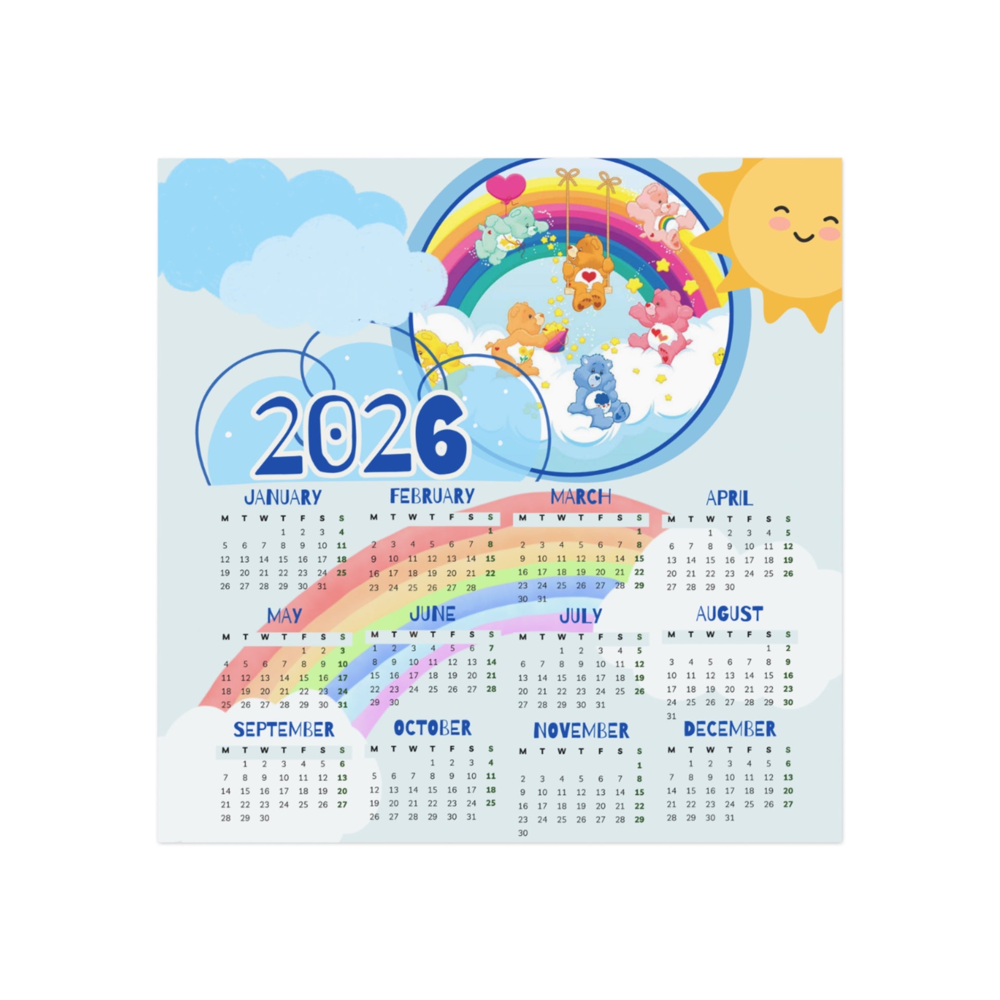 Brighten your space with the Rainbow Bears 2026 magnet calendar, inspired by cheerful clouds, pastel rainbows, and cozy character silhouettes. This gentle design brings a touch of childhood joy and soft organization to your fridge, desk, or locker.