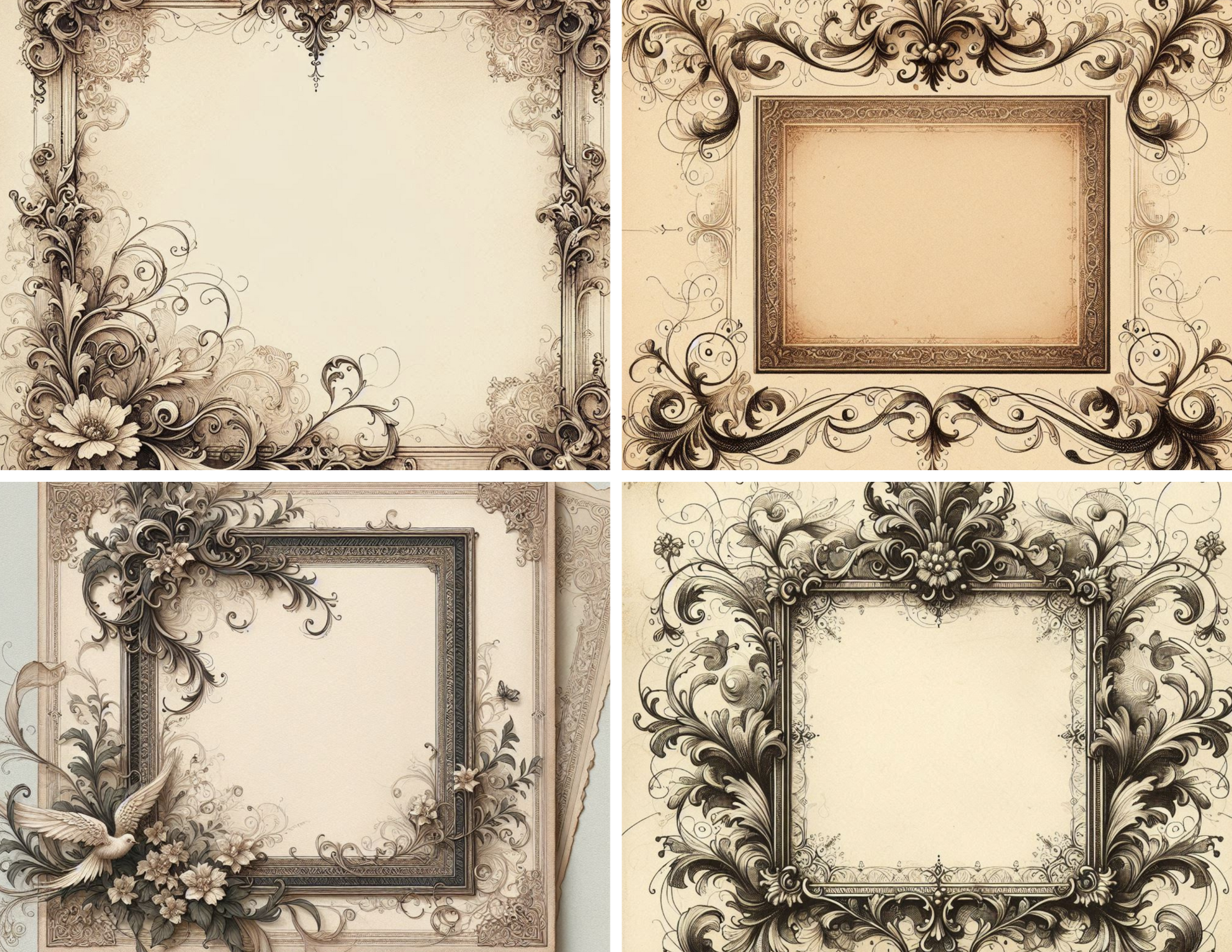 Each page is framed with intricate Victorian filigree, aged ink flourishes, and gentle parchment tones, perfect for adding a touch of old-world beauty to your creative projects. Whether you're journaling quiet reflections, crafting heartfelt letters, or building dreamy scrapbook layouts, this collection offers a versatile and elegant foundation for your artistry.
