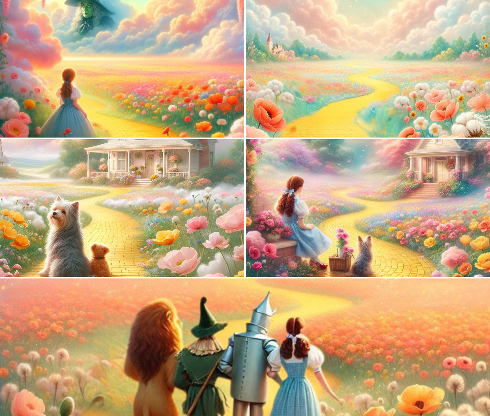 Featuring dreamy Oz-inspired scenes in soft pastel tones
